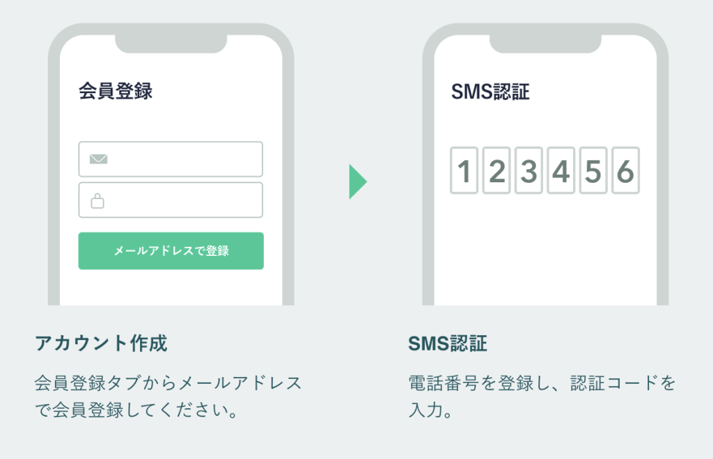 SMS認証で電話番号を登録するとショートメッセージで6ケタの認証コードが届きますので入力します